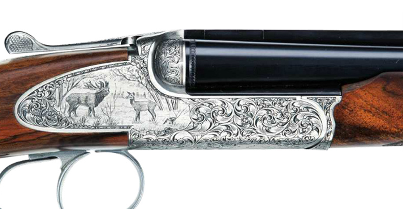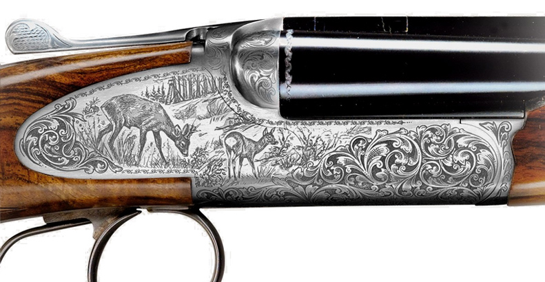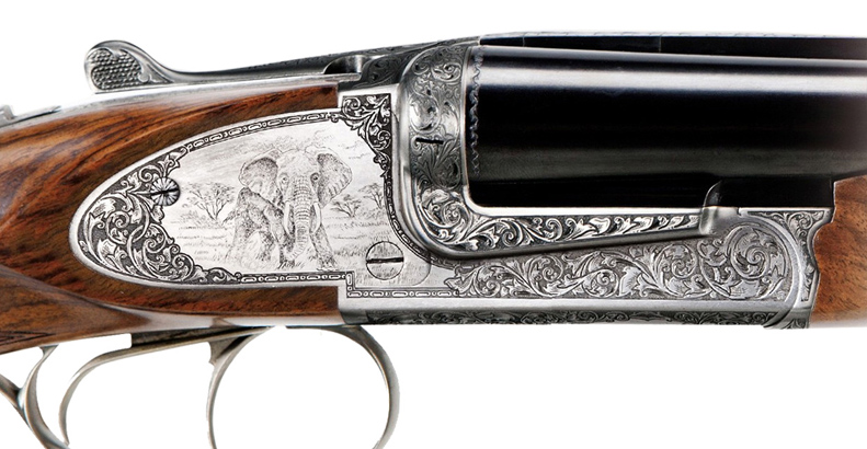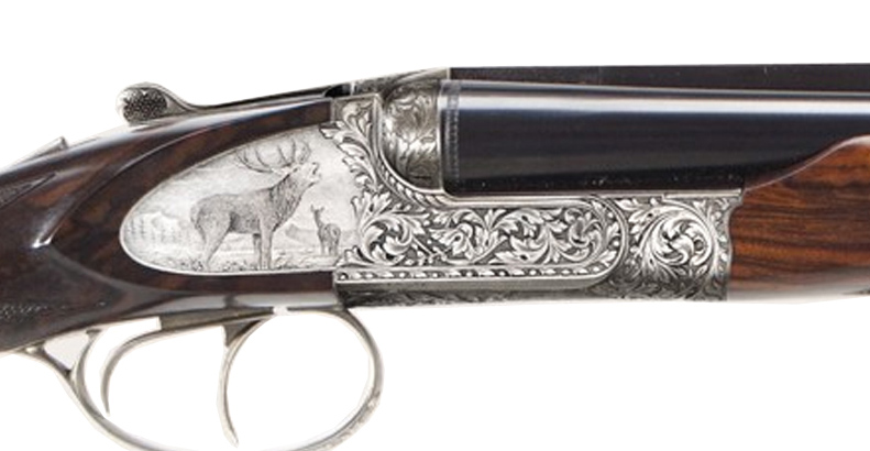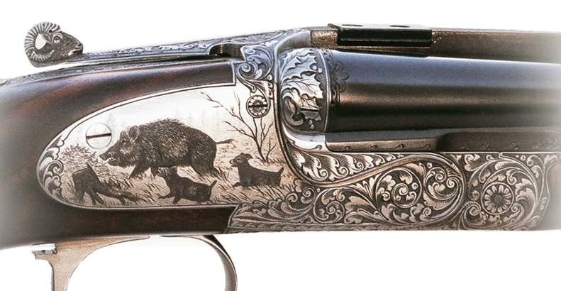 Klasa drewna AAAAAA Grawerunek głęboki na blatach HOLAND & HOLAND , modelowany, sygnowany.
