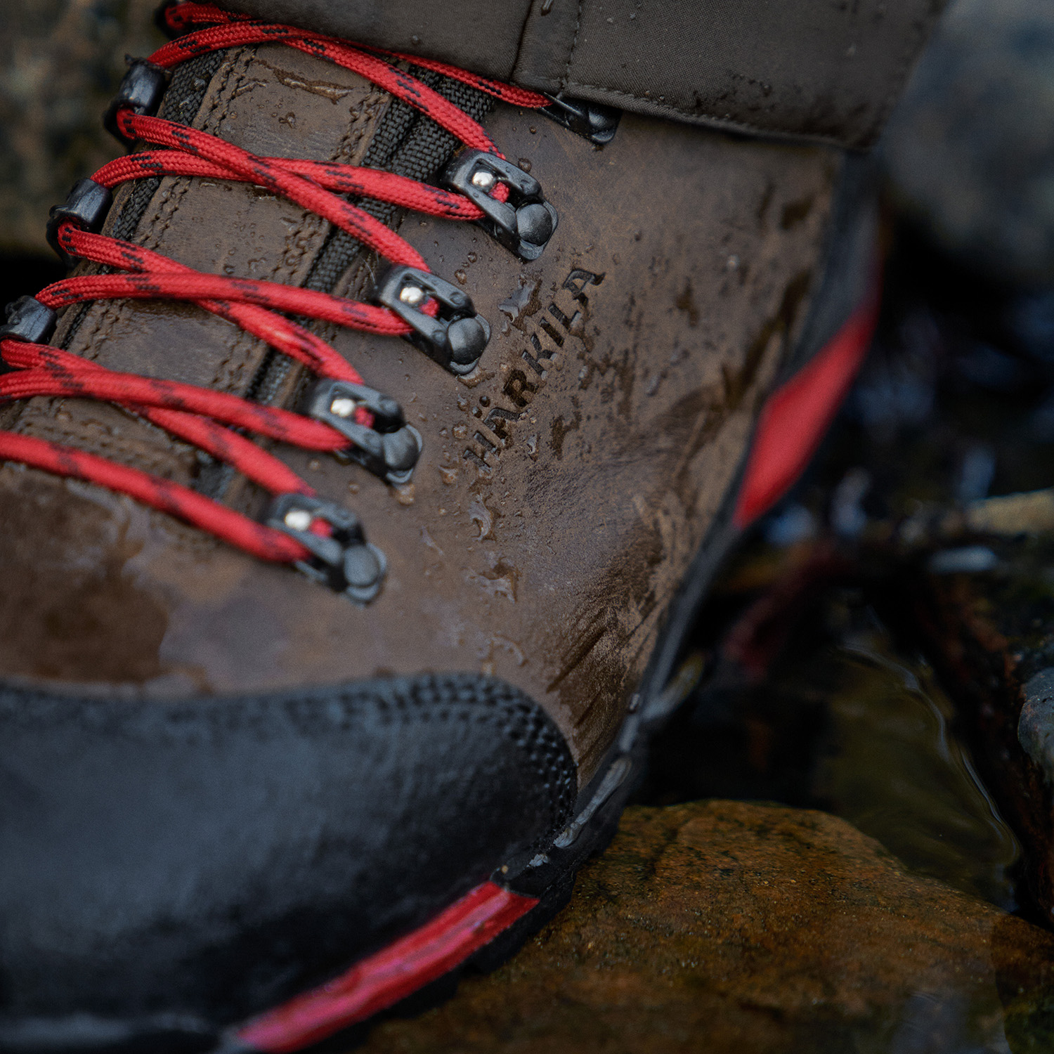 Obuwie Harkila z membranami GORE-TEX ® skrupulatnie testowane, pod kątem ich wodooporność i oddychalność. Zasadą jest że obuwie Harkila powinno być szczelne do górnej krawędzi buta. Wodoszczelność jest badana w stymulatorze „spaceru” w którym obuwie przechodzi test odpowiadający marszowi na dystansie 500km w kąpieli wodnej. Wszystkie elementy obuwia Harkila GORE-TEX ® przechodzą również test na oddychalność i poziom komfort. Nasze stopy stale emituje ciepło, i tak samo podczas testów „sztuczna stopa'' umieszczana w komorze klimatyczne dokonuje pomiarów ilości wilgoci odprowadzanej przez buty.