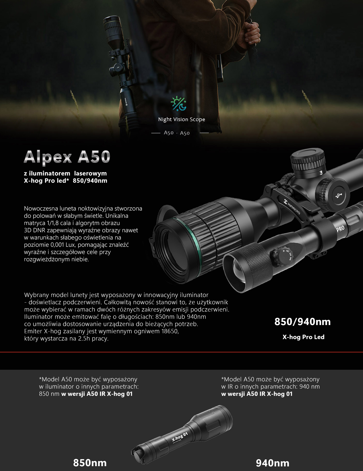 | • Celownik noktowizyjny | noktowizor HIKMICRO Alpex A50TN IR 940 | Hikmicro |