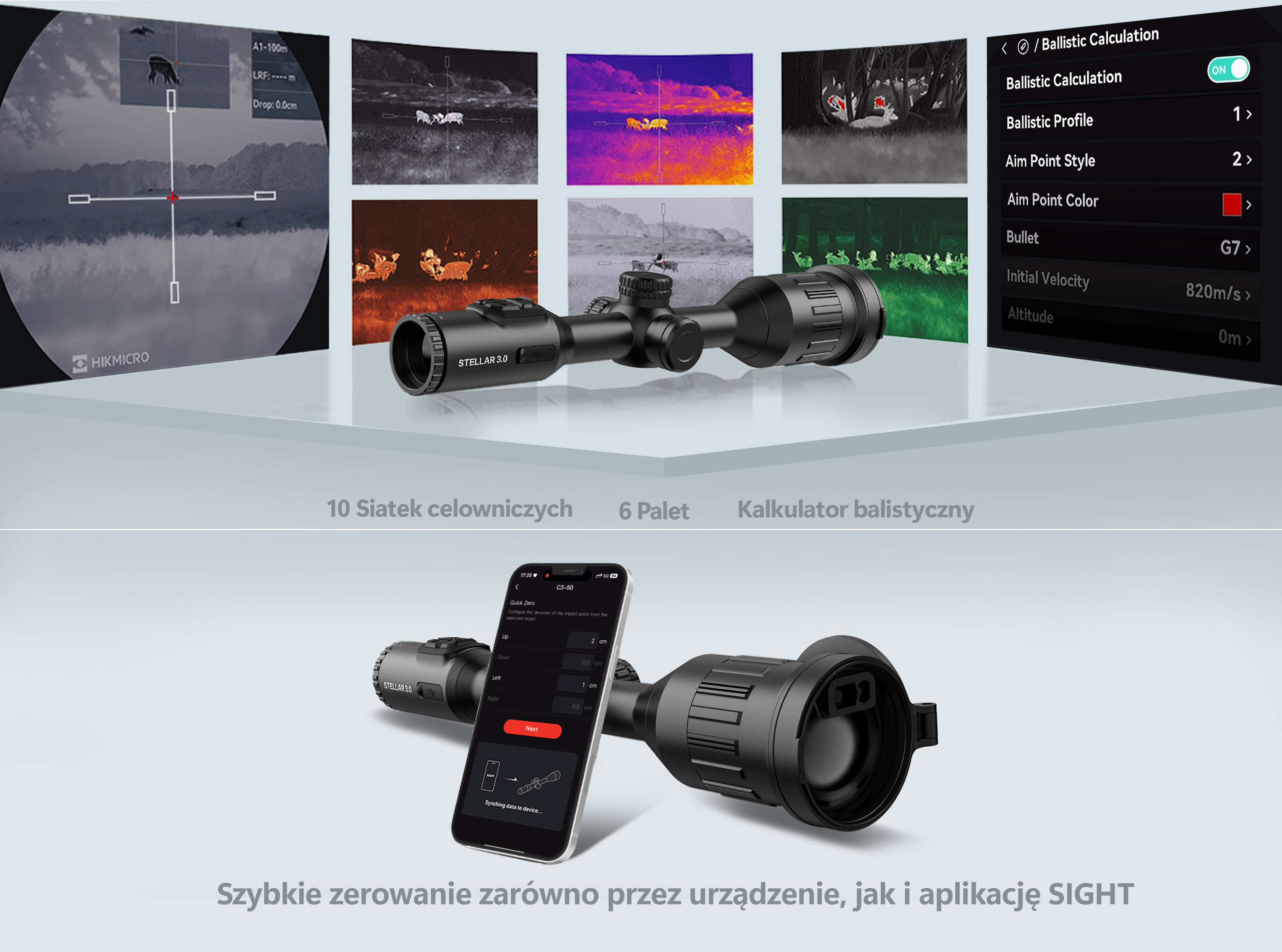 Kalkulator balistyczny w HIKMICRO STELLAR 3.0 zapewniają dokładne strzelanie na dowolną odległość. Nowy system obliczeń balistycznych przeprowadza automatyczną analizę kąta nachylenia i umożliwia dostosowanie koloru oraz stylu sugerowanego punktu trafienia, a także wybór typu pocisku, co zapewnia bardziej trafne decyzje podczas polowań na duże odległości.