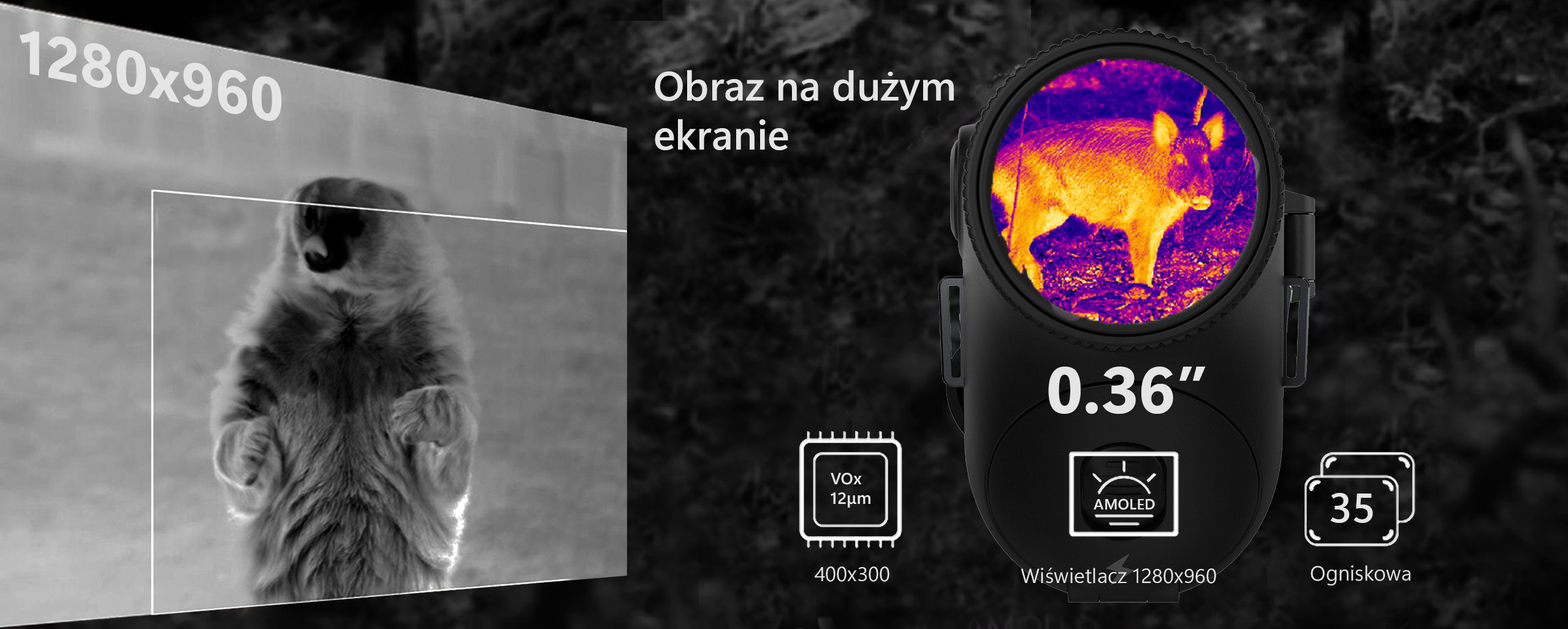 Rozdzielczość: Sensor Termowizyjny o rozdzielczości 400x300px zapewnia wyraźny i szczegółowy obraz w każdych warunkach oświetleniowych.